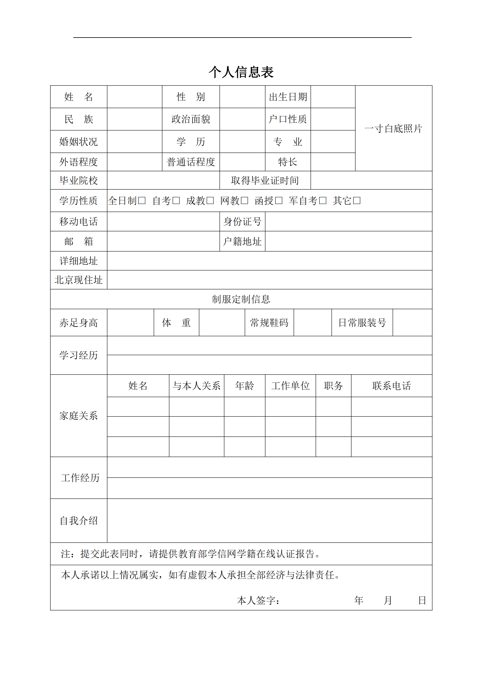 申请入学表